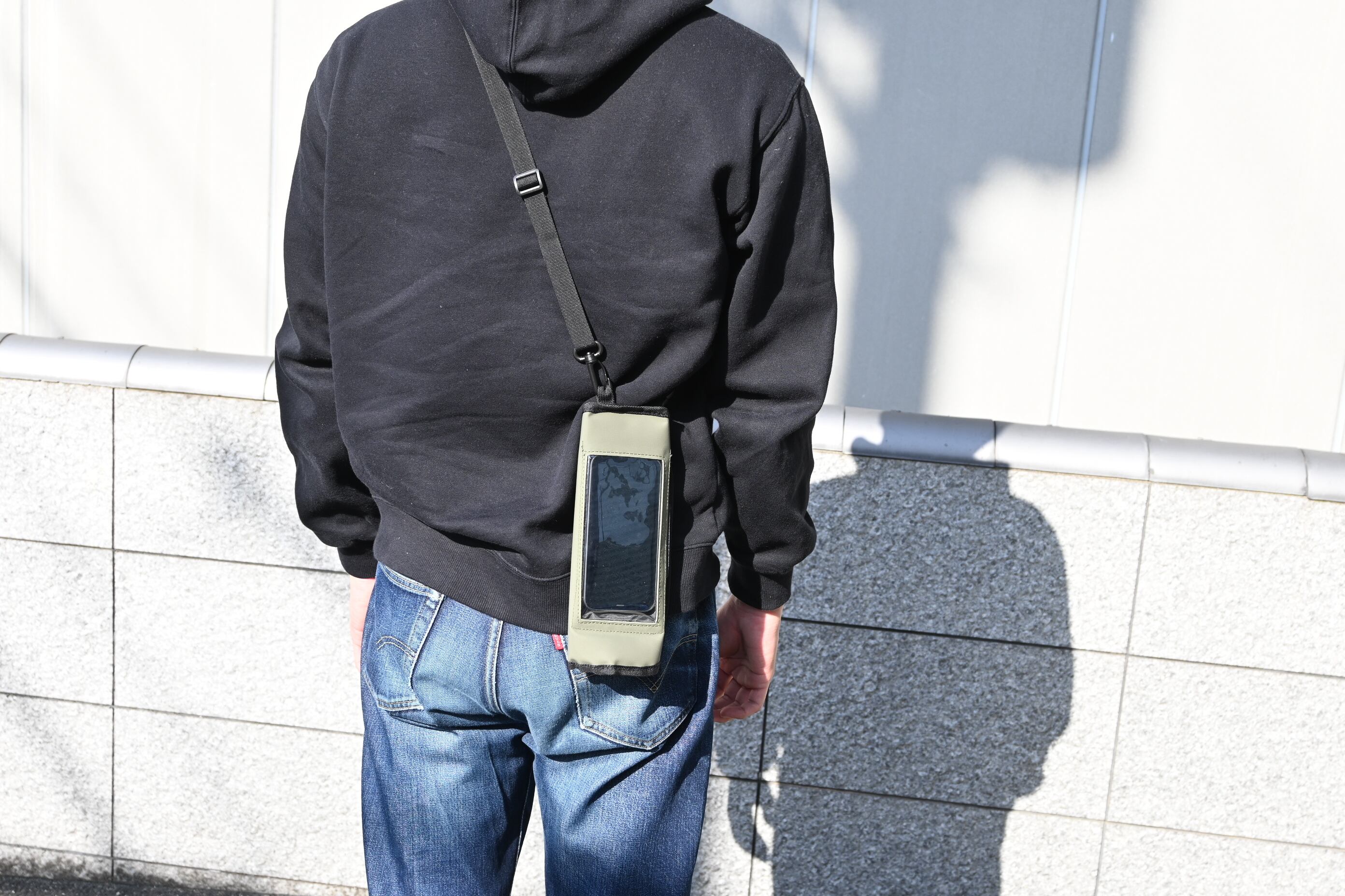 透明PVC部分には、スマートフォンを入れることができます。透明PVC部分はタッチパネル操作が可能になっています。
