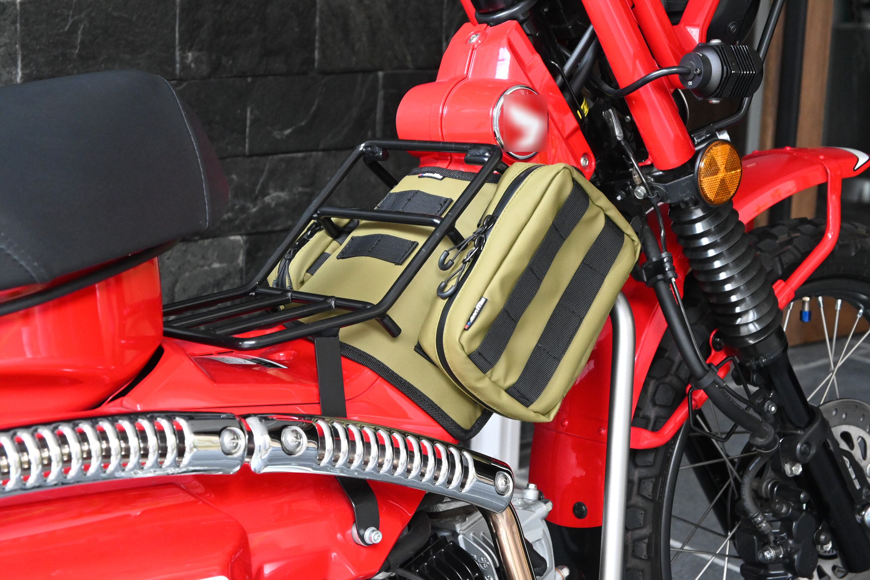 MOLLEフレームカバーに対応しているポーチを取り付けると、小物などを取り出すときにより便利になります。